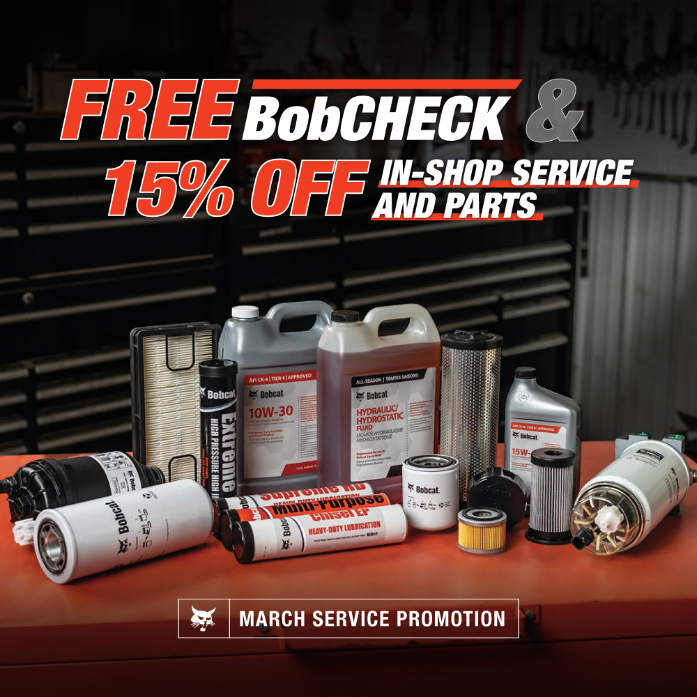 Get your equipment ready for the busy season with our March Service Special, available at Bobcat of Tri-Cities, Bobcat of Grey Bruce, and Bobcat of Fergus. From March 1st to March 31st, save 15% on all genuine Bobcat parts when you bring your equipment into the shop for service, and receive a FREE BobCheck, our comprehensive multi-point inspection designed to help prevent costly downtime as spring work ramps up.